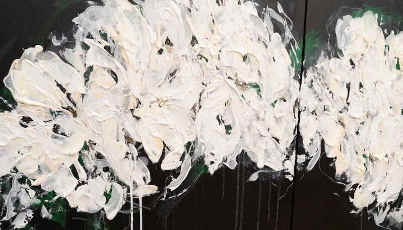 シンプルな白ベースの花を2連キャンバスに表現した作品。