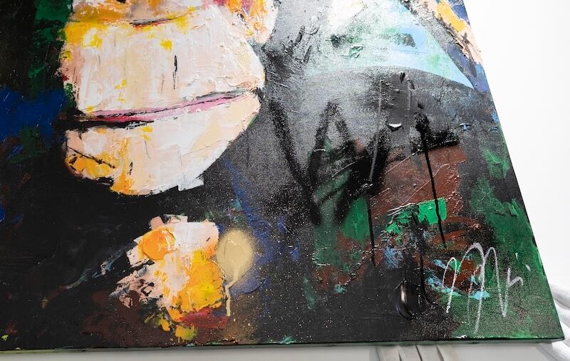 ポップアートやモダンアートのテイストが入り交じったスプレーアート作品。