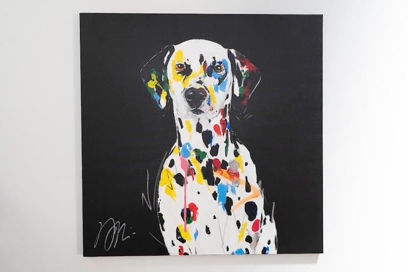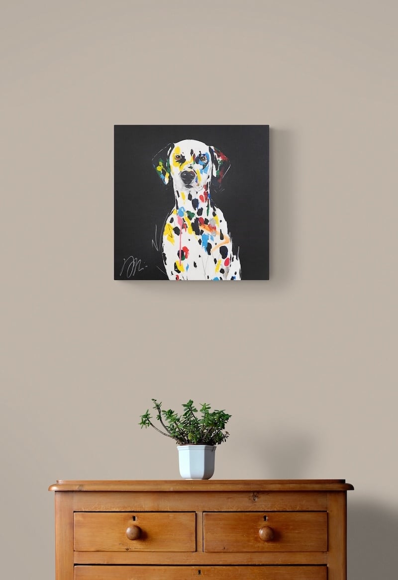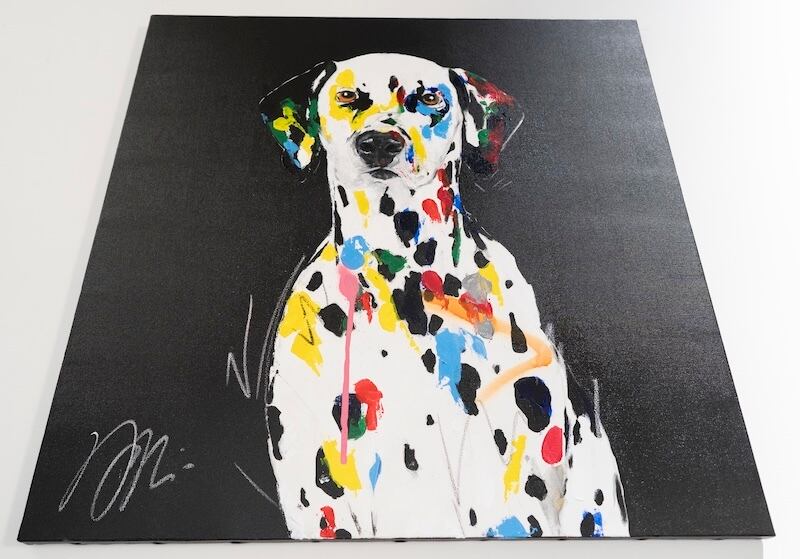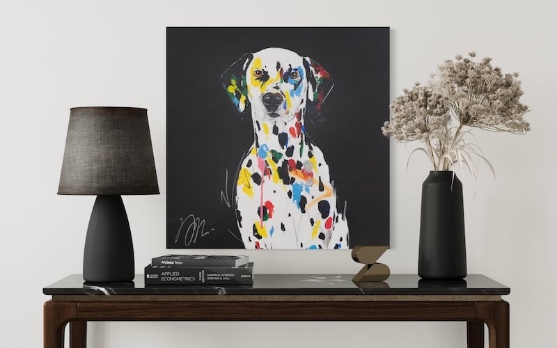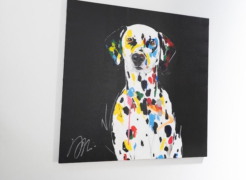 動物シリーズからダルメシアンのスプレーアート作品!本作は652mm正方形キャンバスにダルメシアンをポップに描いており、お洒落にスタイリッシュに飾って頂けます。