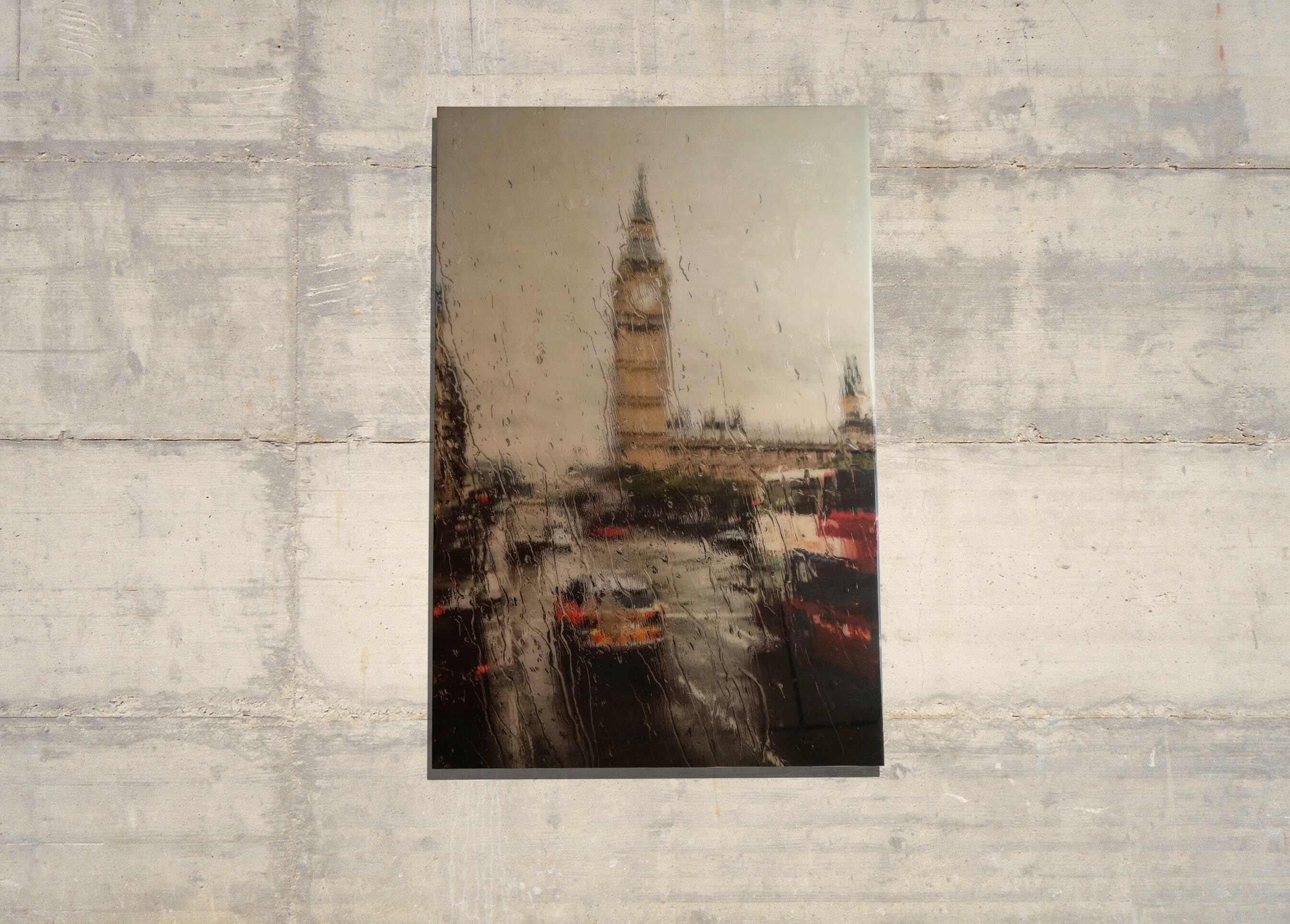 背景はロンドンの街並みに、雨をテーマに制作された本コレクションは雨独特の雰囲気をキャンバス上に閉じ込め表現した作品となっております。
