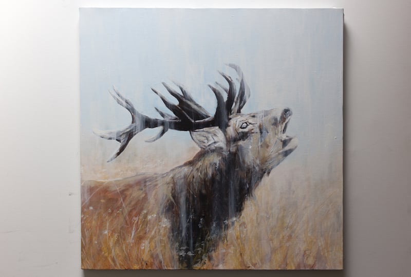 動物シリーズからトナカイの作品!自然の中で佇むトナカイの姿を正方形キャンバスに表現した作品。トナカイと光と美しさがとても神々しく大変素敵な作品になっています。動物好きならずともおすすめの作品です。贈り物の絵としてもおすすめ。この作品は写真にはありませんが額装してお届け致します。